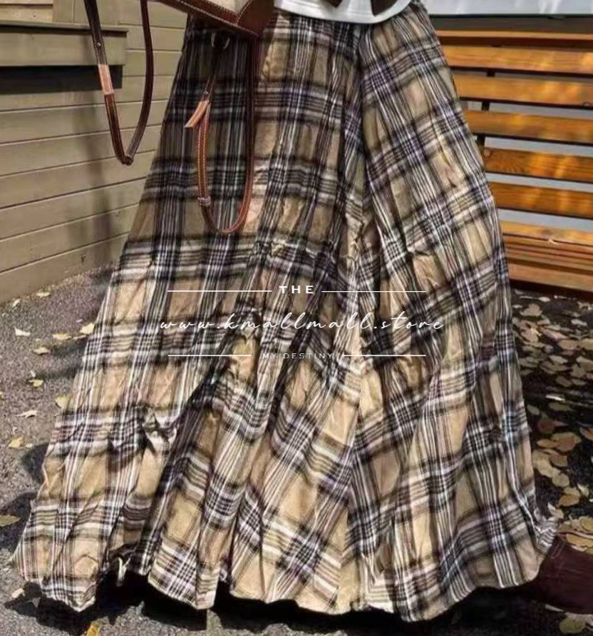 撞色格紋半截傘裙