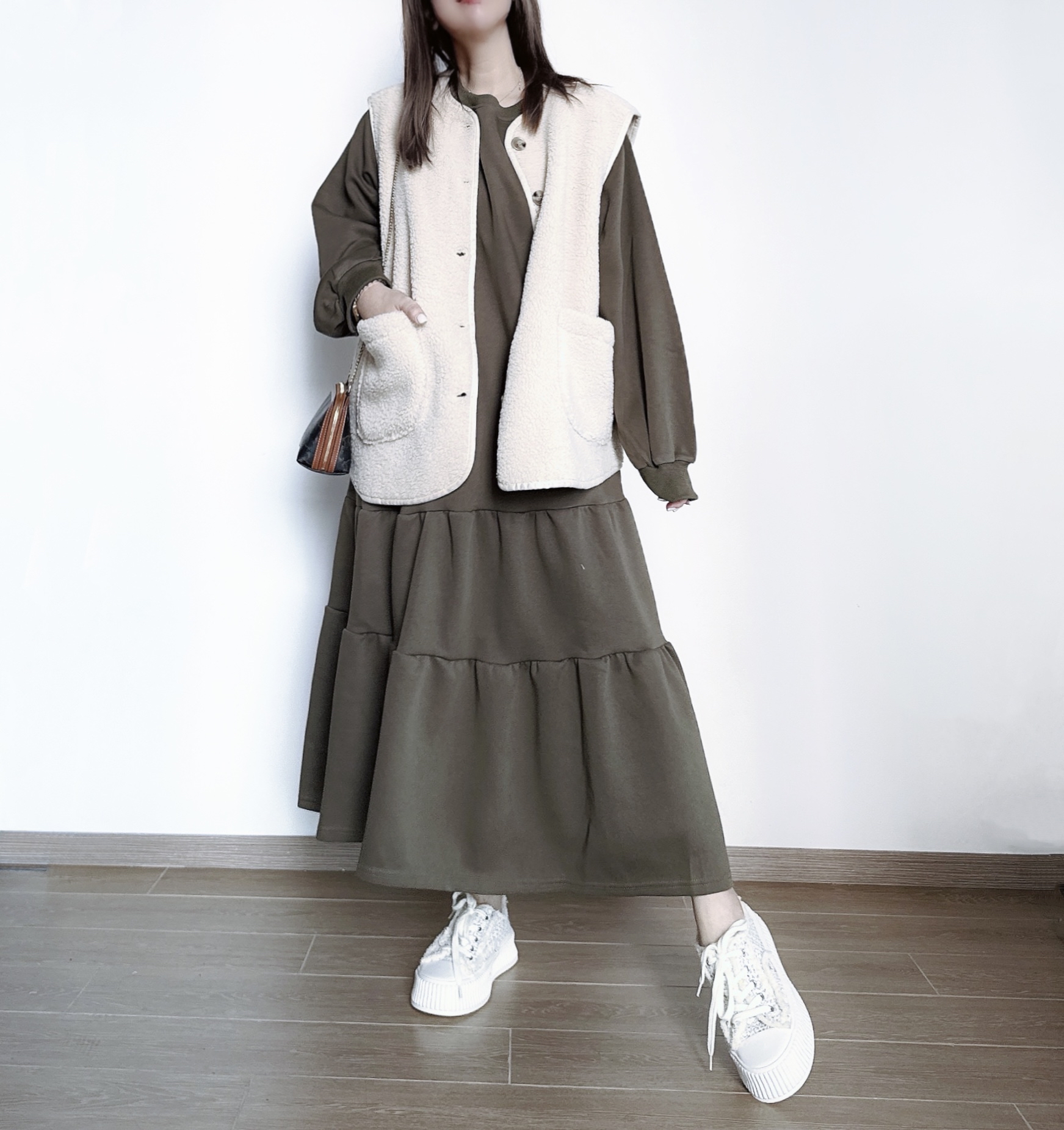 〻𝒇𝒂𝒍𝒍 𝑾𝒊𝒏𝒕𝒆𝒓 𝑵𝒆𝒘〻 【 請 留 意 】 ▸ 貨 品 韓 國 直 送🛫🇰🇷〻需 要 預 訂〻 付 款 後 約 15 日 內 到 港 ☁︎☁︎☁︎ ☁︎☁︎☁︎ ☁︎☁︎☁︎ ☁︎☁︎☁︎ ☁︎☁︎☁︎ ☁︎☁︎ ☁︎☁︎☁︎ 純 色 簡 約 風~ 橄 欖 綠🫒其 實 好 多 美 人 鐘 意 㗎! 因 為 著 出 黎 好 顯 白 㗎! 好 滑 好 親 膚 既 太 空 棉 料! 舒 服 到 爆 ! 版 型 睇 到 就 咁 企 係 度 都 好 垂 直 的! 壓 扁 咗 成 個 人! 裙 擺 一層 層 A shape cut 喔! 兩 側 有 袋~ 鬆 鬆 的、好 鐘 意 呢 種 鬆 弛 感!🦦 孕 媽 都 著 得!放 假 著 去 湊 b 放 電 /旅 行 打 卡 影 相 又 得!𖠚ᐝ 好 似 我 咁 外 加 件 [忌廉白搖粒絨馬甲] 啦! 又 有 layering 又 可 保 暖! 香 港 天 氣 岩 著 㗎 啦!😉😆 • sɪᴢᴇ ➚ ᴄʜᴇsᴛ: 50” | ʜɪᴘ: ♾️ | ʟᴇɴɢᴛʜ: 47” • ᴄᴏʟᴏʀ ➚ 一色 - 𝕂𝕚𝕜𝕚 158ᴄᴍ - 💯𝖬𝖠𝖣𝖤 𝖨𝖭 𝖪𝖮𝖱𝖤𝖠🇰🇷 ☁︎☁︎☁︎ ☁︎☁︎☁︎ ☁︎☁︎☁︎ ☁︎☁︎☁︎ ☁︎☁︎☁︎ ☁︎☁︎ ☁︎☁︎☁︎ 【 請 留 意 】 ▸ 貨 品 韓 國 直 送🛫🇰🇷〻需 要 預 訂〻 付款後約 𝟣 𝟧 - 𝟣 𝟪 日 內 到港 ▸ 購滿正價貨品 $𝟪 𝟢 𝟢 或以上包郵💌 ▸ 付款方式:Payme / ATM / 轉數快/ Alipay ▸ Whatapps: 𝟨 𝟤 𝟪 𝟦 - 𝟥 𝟧 𝟥 𝟩 (IG/Email/FB✖️不回覆) و