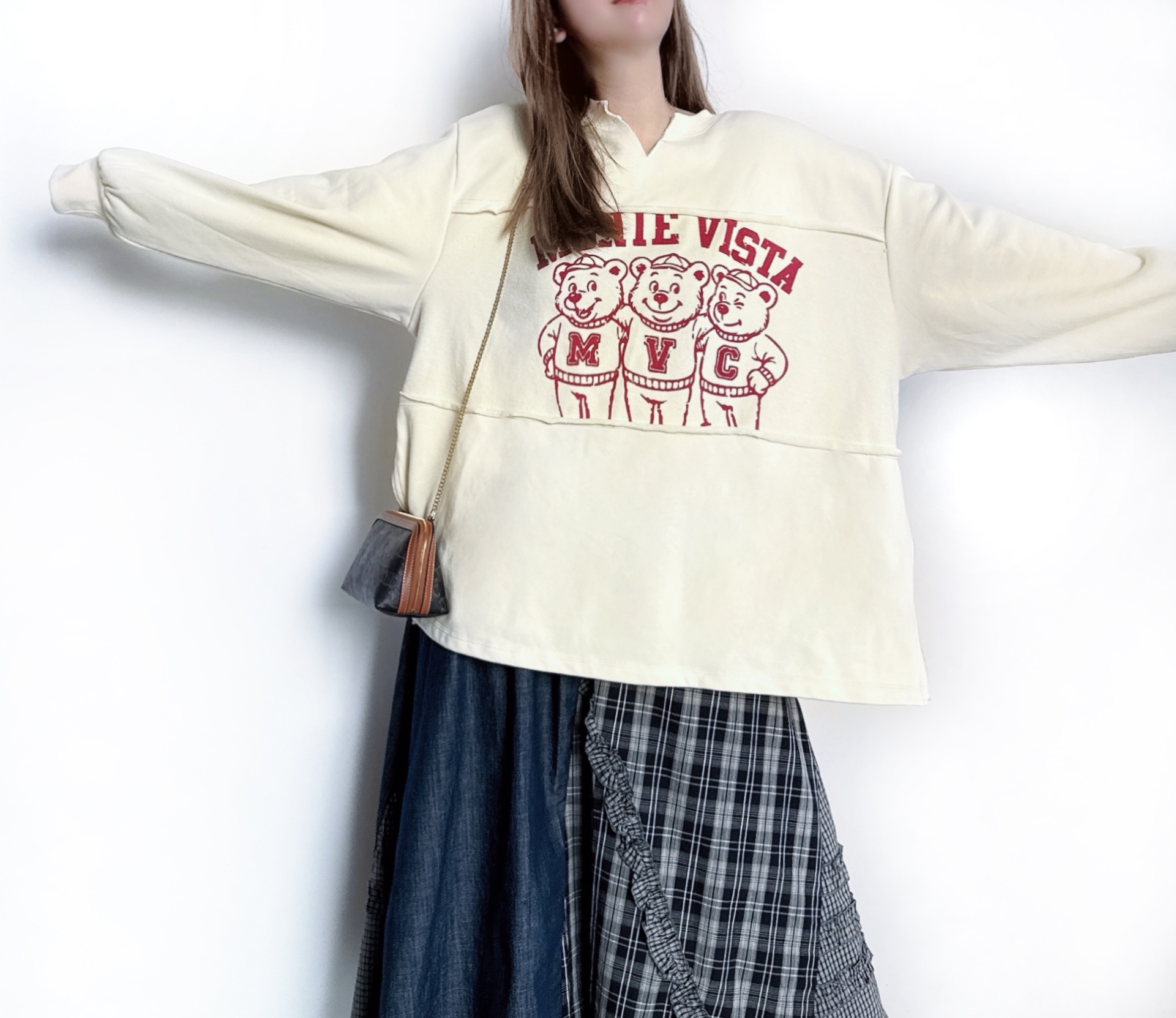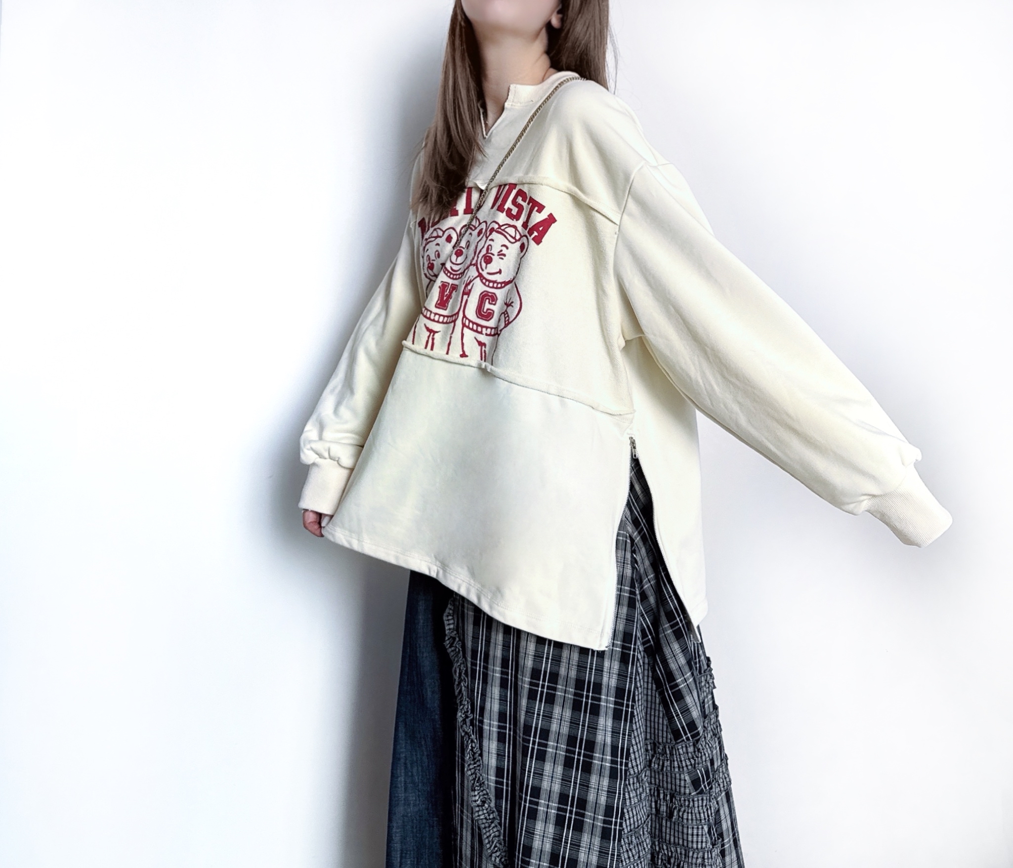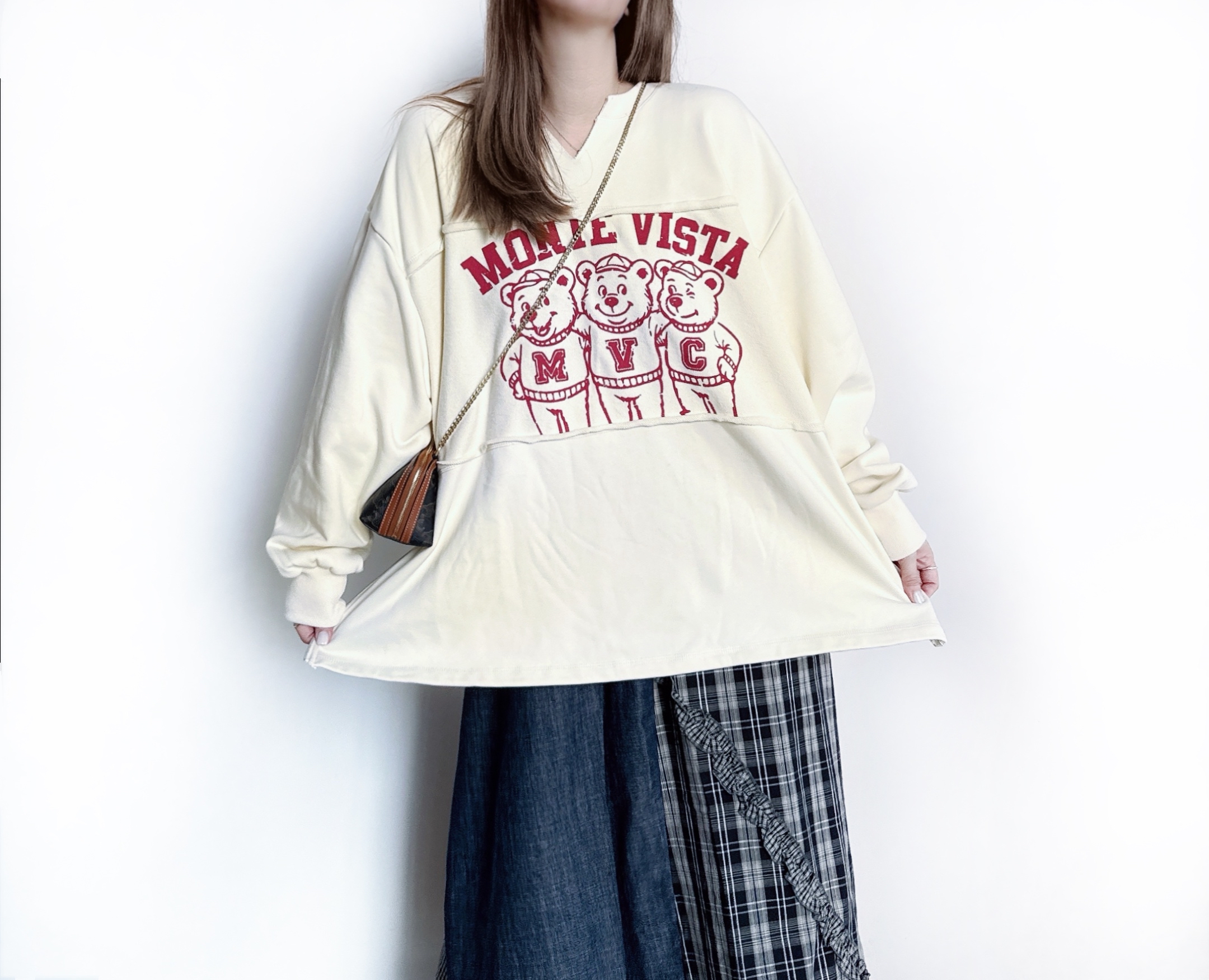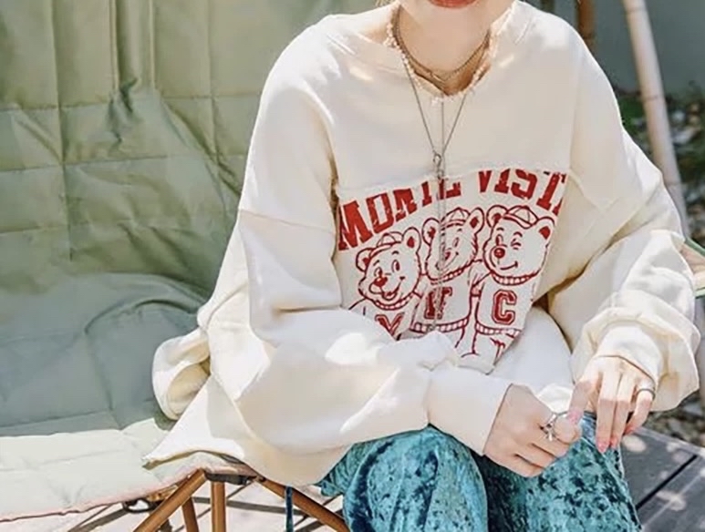 鬆身撞色熊熊print衛衣
